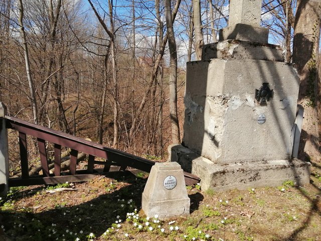 Jakieś trzy lata temu upadające drzewo albo konar złamało przęsło ogrodzenia przy pomniku i jeden krzyż. Część ogrodzenia na prawo od pomnika nie była odtwarzana, bo ziemia się tam osuwa (stąd teraz te krzywe nagrobki) i zbocze wymaga stabilizacji, a to kosztuje grube pieniądze.